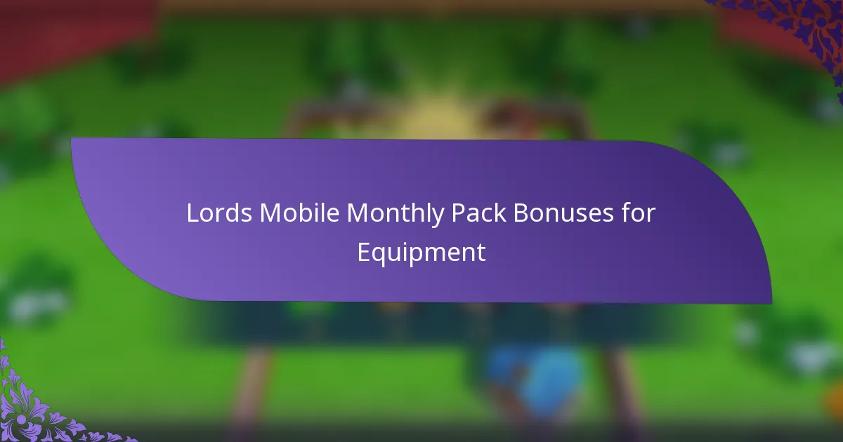 Lords Mobile monthly packs provide players with various bonuses aimed at enhancing their equipment. These bonuses can significantly improve gameplay by boosting equipment stats and effectiveness, making them a valuable investment for players looking to strengthen their armies.