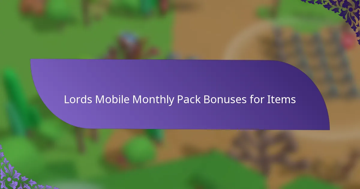 To maximize the benefits of monthly pack bonuses in Lords Mobile, focus on strategic item utilization, effective gameplay tactics, and timing your bonuses wisely. Understanding how these bonuses work and integrating them into your overall strategy can significantly enhance your gameplay experience.